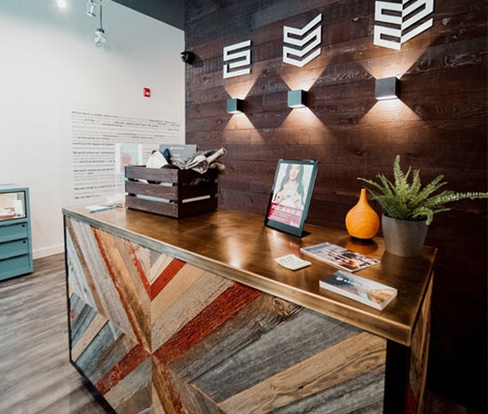 Each Spiritleaf store evokes a positive energy and provides customers with a welcoming space to gather, learn and share experiences. The crisp white walls help brighten the space and create an extension from the fresh outdoors. Distressed woods and metals were carefully selected to add unique character.